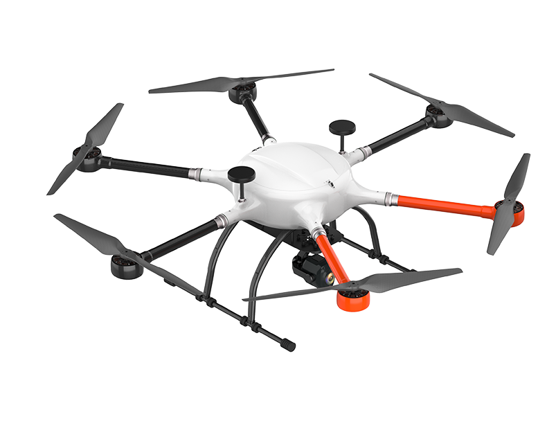 A universal hexacopter with long flight time. With the tough aerial composites body design, self-developed high-performance dynamics systems, advanced flight control and ESC algorithm, it is a safe and reliable drone platform that is perfect for goods delivery, large infrastructure inspection and monitoring.